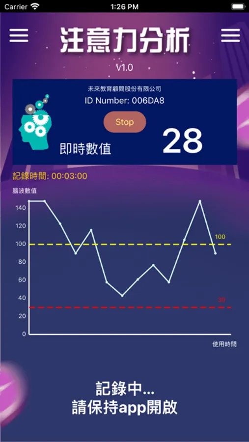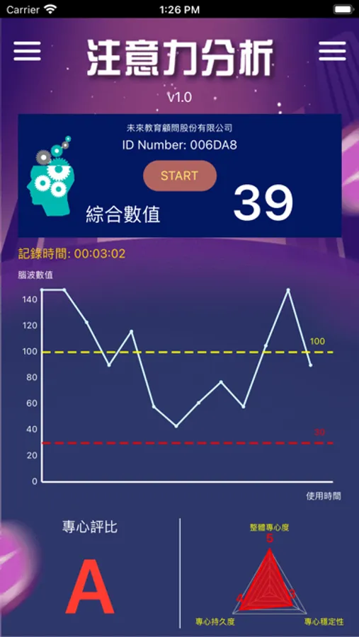 這個APP是用來分析使用者的注意力等級,分析過程需搭配專用的腦波儀,