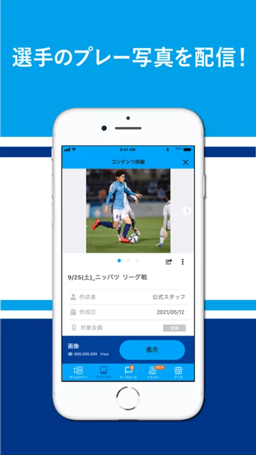 選手のプレー写真やクラブの裏側の動画など、様々なコンテンツが投稿される機能です。投稿されたコンテンツは一定期間保存され、いつでもすぐに閲覧することができます。