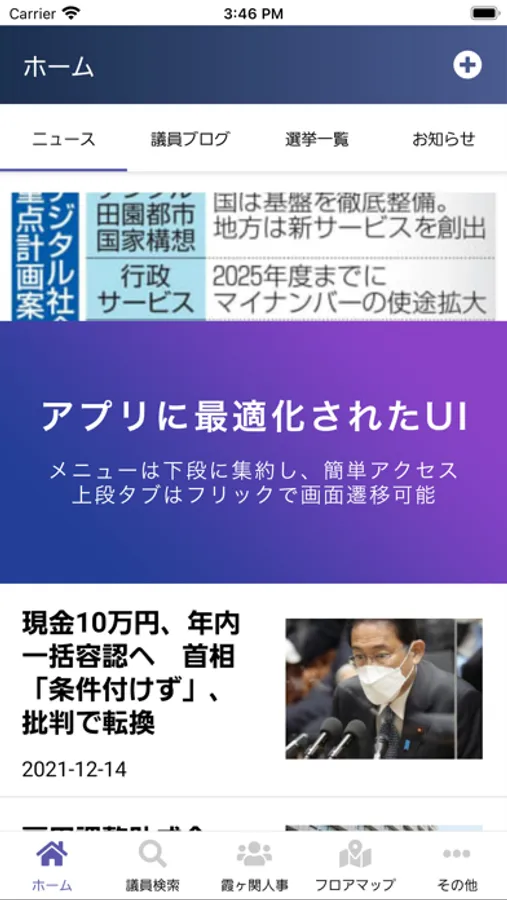 姉妹アプリの「国政DATA」でも利用できていたフロアマップや選挙DBも搭載。