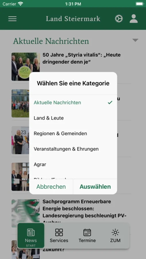 Mit der Land Steiermark App werden breite Informationen und ein einfacher Zugang zu Leistungen des Landes über Smartphones angeboten. Das inkludiert