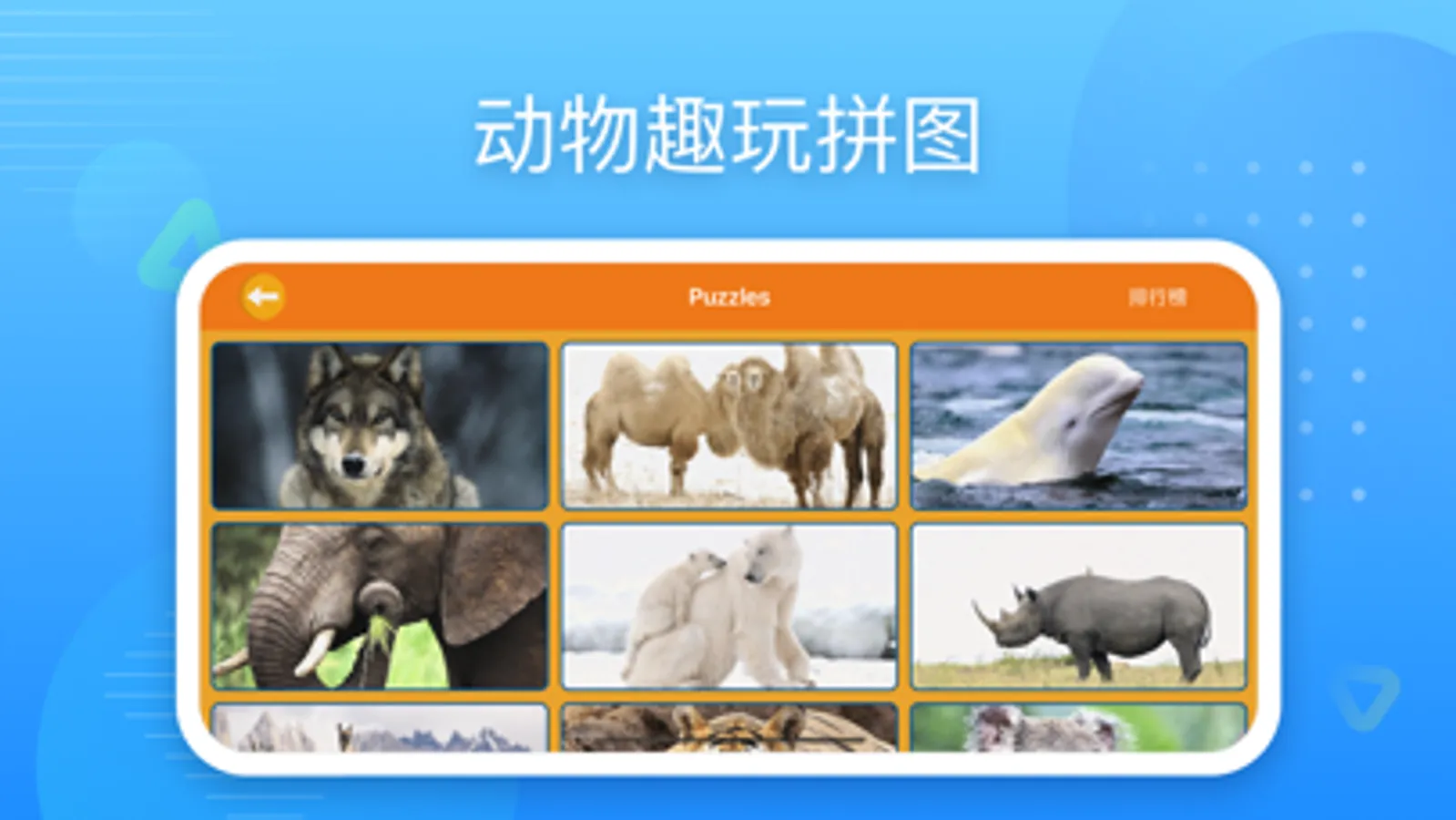 【拼图板】—— 真实的动物照片,配合有趣的拼图游戏,增强孩子对整体和局部的感知。