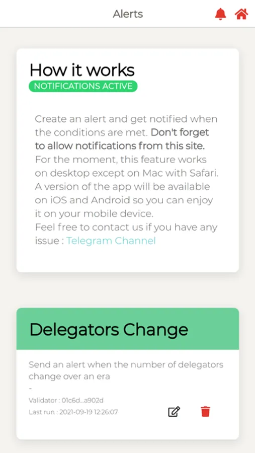 As a delegator, you can check easily if the validator that you have selected continues to work correctly. You can also get notified how many CSPR you've earned for each era.