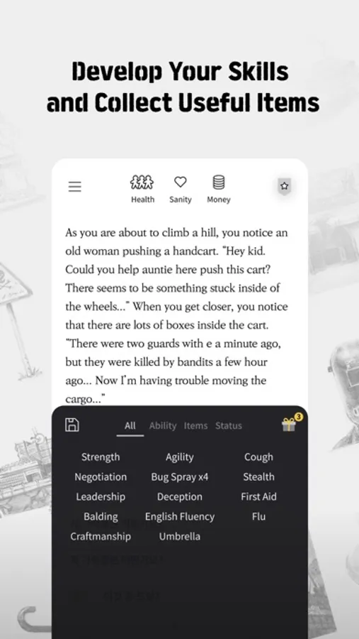 Seoul is in ruins after the nuclear war! Collect abilities and items to prepare for various crises. Depending on your choices, the fate of Seoul will also change.