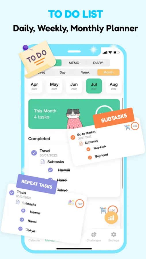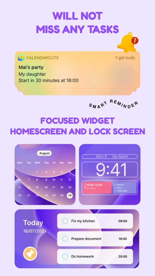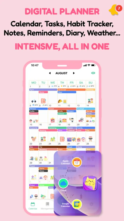 CUTE CALENDAR - ALL IN ONE fully integrates features such as TO-DO LIST, NOTES, DIARY, REMINDER, HABIT TRACKER, and WEATHER,... This makes it possible for users to do everything on a single app without downloading any other app.