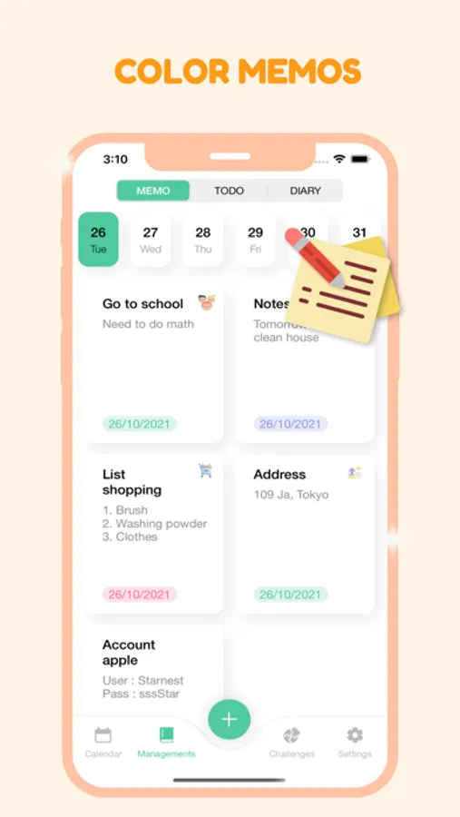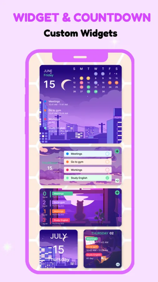 - IOS 14 widget with many kinds (calendar, mood, todo, memo) can change color