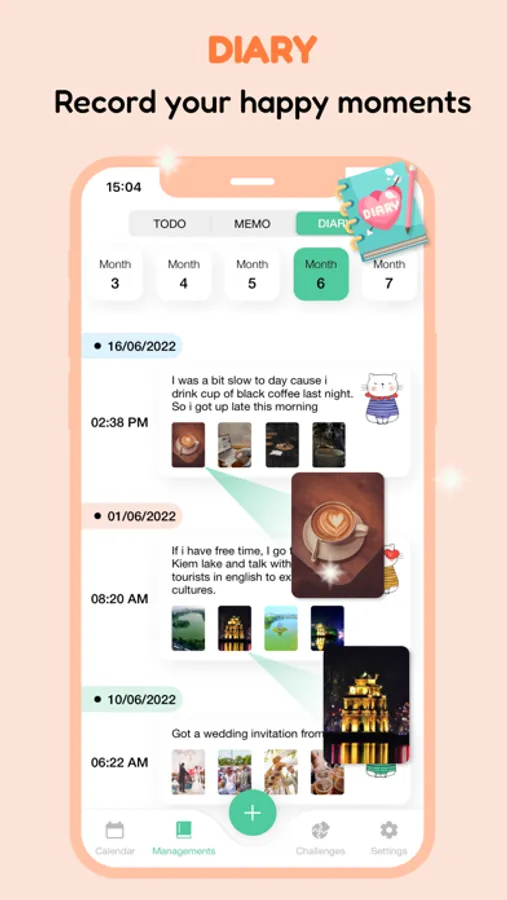 - Sticker: The app allows you to freely express your style through Stickers. This feature is applicable to both events and Todo lists.