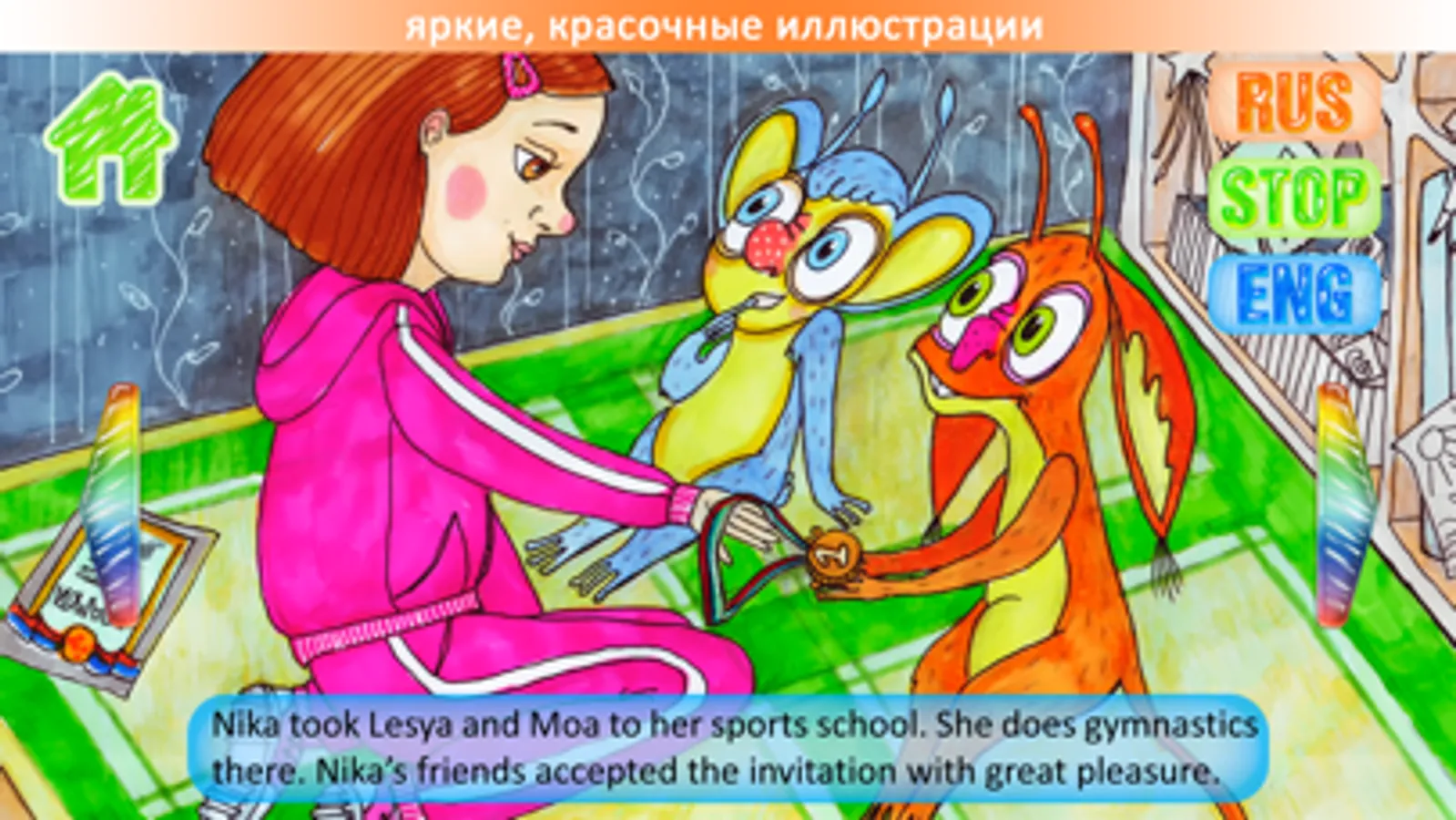 Изучение языка посредством погружения ребенка в мир историй из жизни девочки Ники и ее сказочных друзей. Вас ждёт слушание звучащих текстов с учебной целью для тренировки восприятия