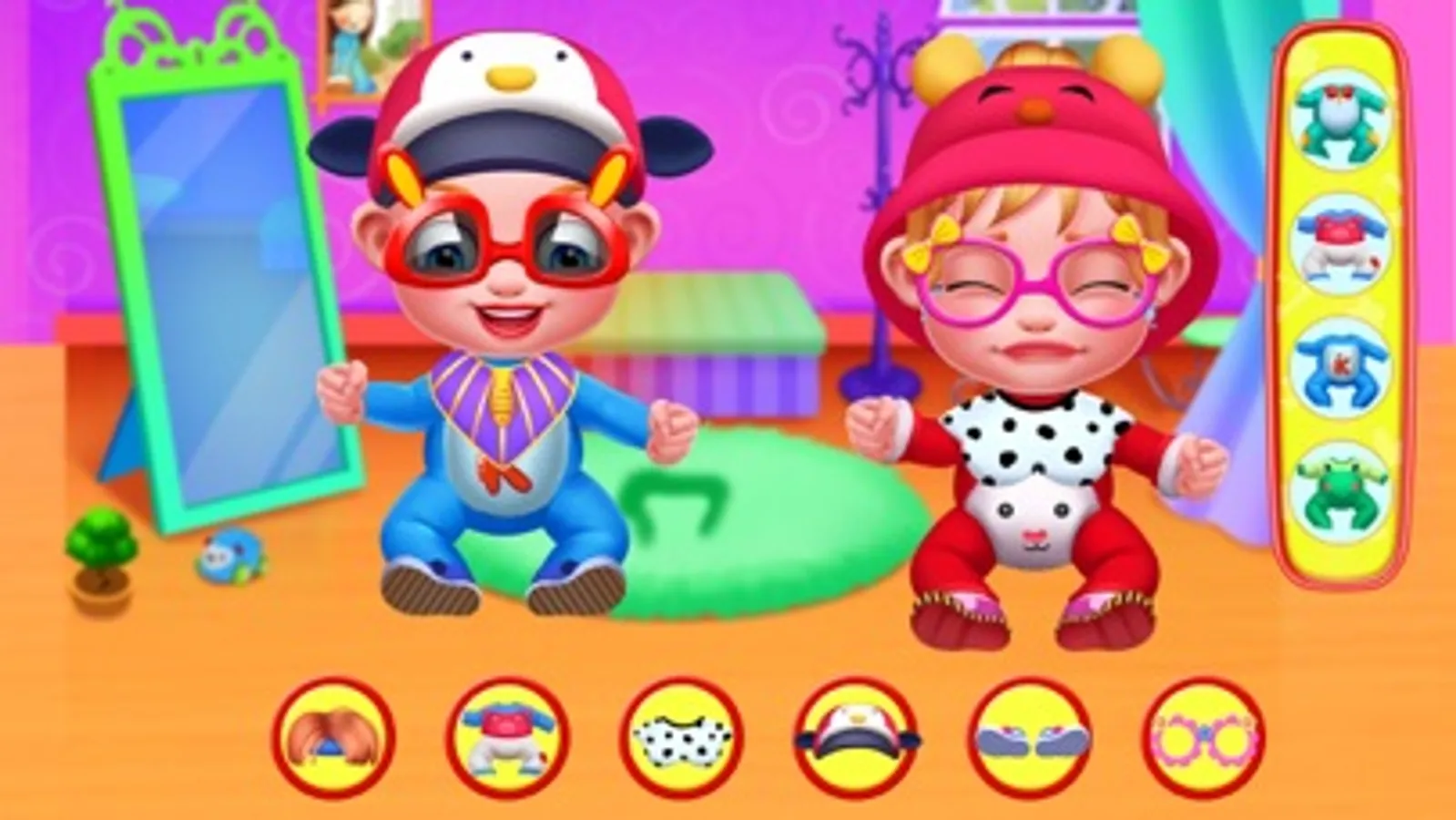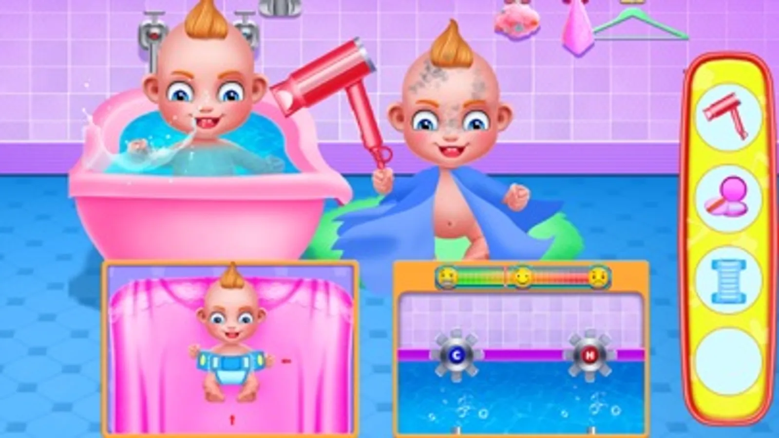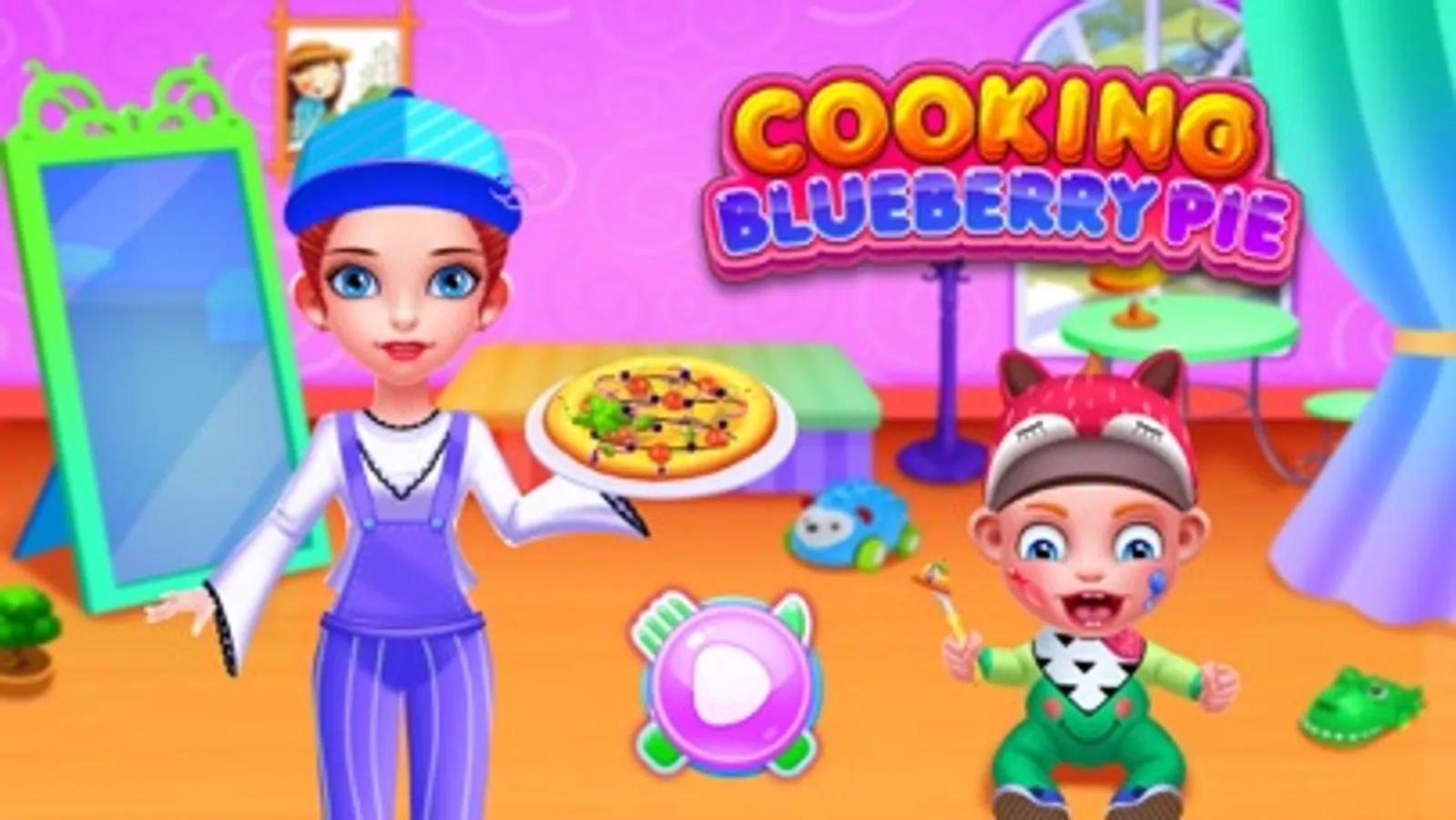 This is the first time I'm working as a babysitter, now I have to change my cloths and get ready to pick up some blueberry pies.This is so much fun!Please help me to choose suitable clothes. Then you can help her to pick up blueberry. Don't pick up green and decaying blue berries!Select good blueberries and squeeze it to dorp the blueberry juice and keep the blueberry jam. It's time to make a blueberry pie!Let's do it!Put all the raw materials in the bowl and stir well it to make it to wafer. Drop the blueberry jam with water together and then you can decorate it with some fruits and bake it in the oven. After several minutes, delicious blueberry will be finished. Then you can prepare some fresh fruits to make a nice fruit place. Cut the right fruits you need. Then you can feed the baby with blueberry pies and fruits. Don’t forget to help the baby wipe clean the mouth. It’s time for shower. The baby doesn't like baths. So we need to be fast. Adjust the water temperature and clean the baby well. Change a new baby diaper for him. At last, we can design a cute style for him. Let’s see how lovely the baby can be!