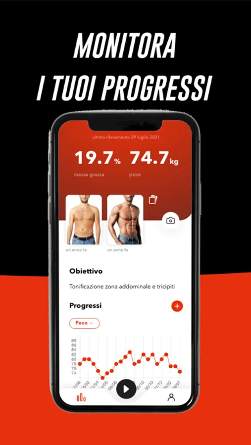 Avrai sempre sotto controllo la tua attività fisica: potrai visualizzare quali esercizi sono previsti nel tuo piano di allenamento, i tuoi progressi e come cambia il tuo fisico nel corso del tempo.