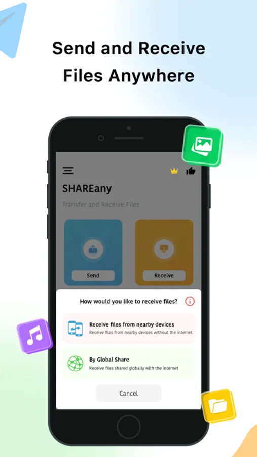 SHAREany is a truly global file sharing app that also supports cross-platform sharing. Share your favorite movies, music, videos, apps, & documents with anyone in any corner of the world.