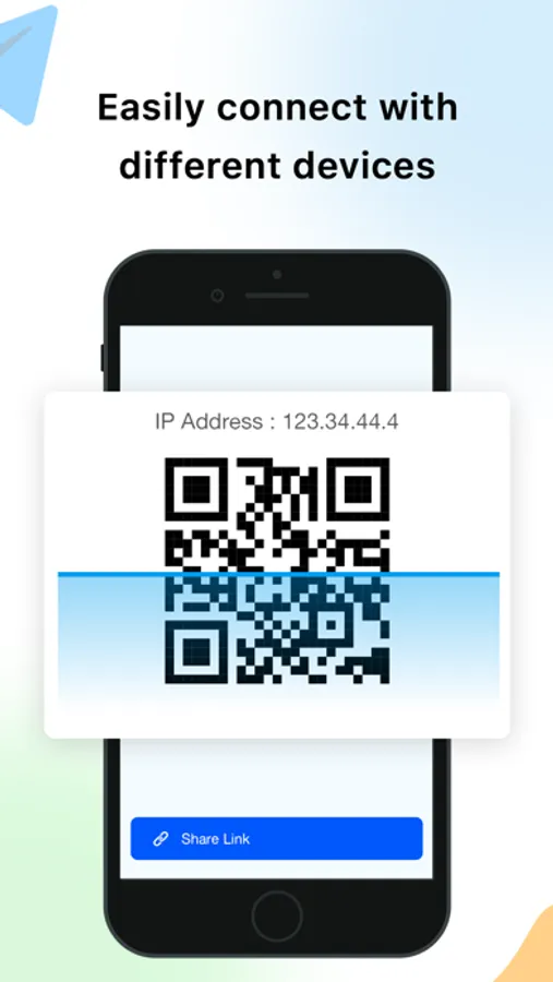 You can also share large files with anyone in any part of the world on the internet by entering a security key or by scanning a QR code. Share files effortlessly between devices across platforms at lightning-fast speeds.