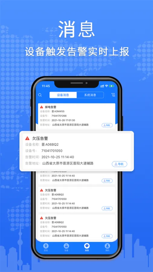 (1)设备定位实时查询:随时查看设备的实时位置。