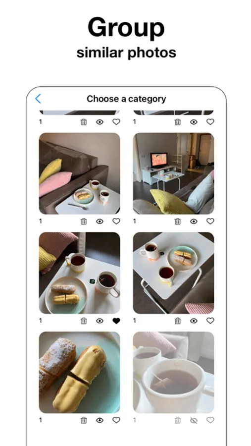 The app uses AI to identify similar photos and group them in a multi-level structure. Amapic automatically finds groups of photos with the same postures, angles, people or objects and presents it to you in a nice simple UI. You don't need to swipe through hundreds of photos to find ones you like - just choose the group you like and hide or delete the rest.