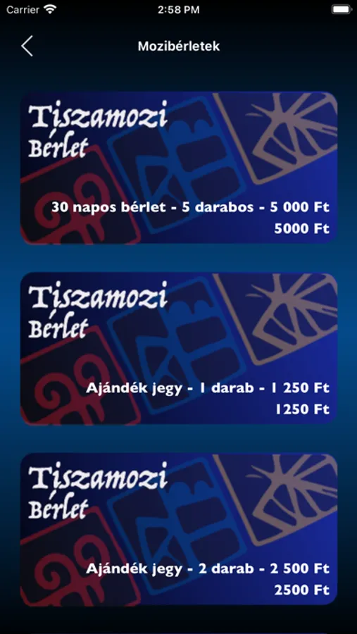 Ezzel az alkalmazással a TISZApART Moziban lehet vásárolni.
