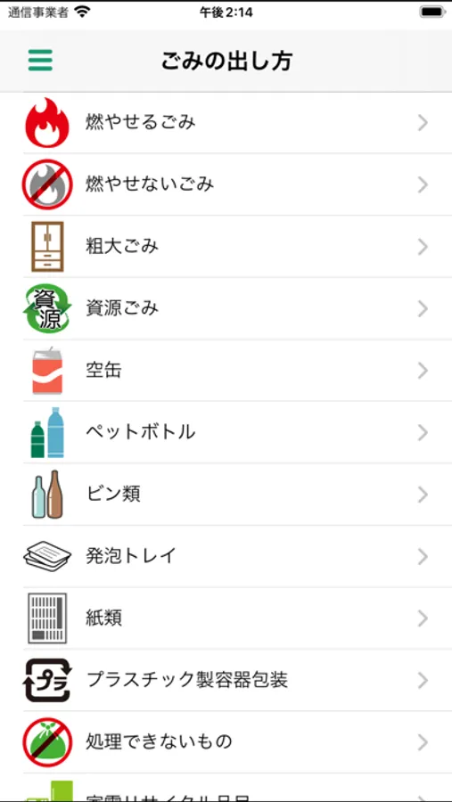 品目毎にごみの捨て方を確認できます。また、検索性の高い仕組みをつかっているため探しているモノを簡単に見つけることができます。