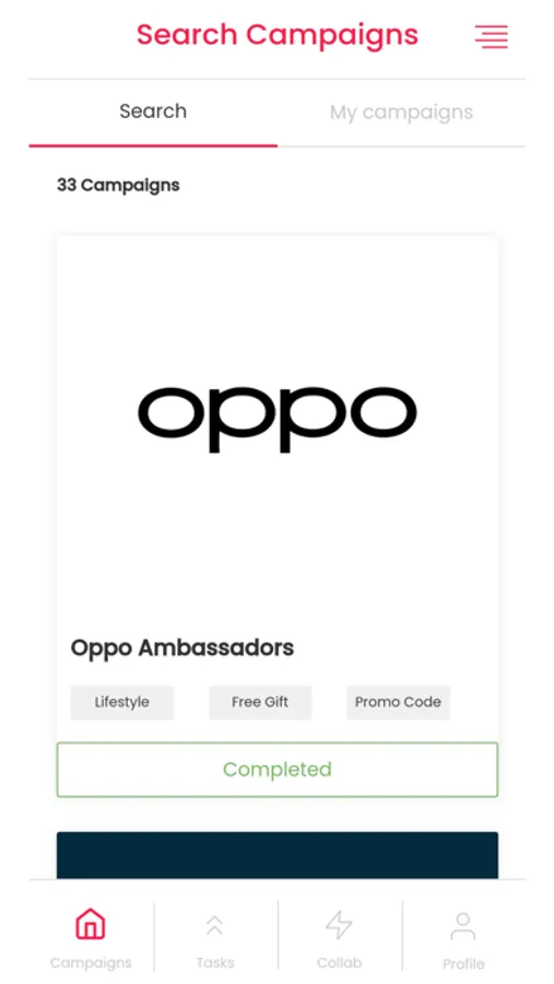 INFLUENCERS: Complete your profile & apply to any campaign you're interested in to start collaborating.