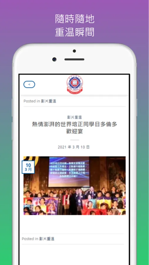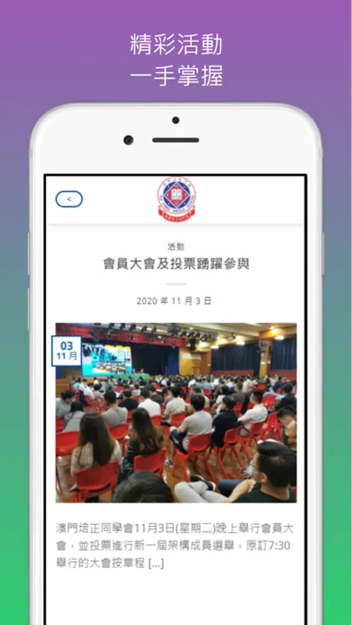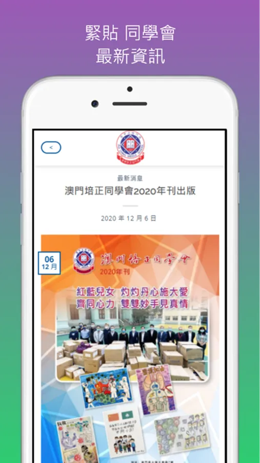 澳門培正同學會,向來以聯絡同學感情,開展同學活動、關注及協助母校事業發展為宗旨。為加深校友們之間的聯繫及互動,現透過澳門培正同學會APP,作為除澳門培正同學會網頁外的另一個分享消息及資源渠道,盼能作牽頭作用,讓校友們重拾起那些年對母校的情懷。