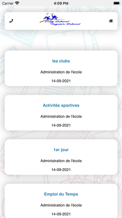 L'application CITY SCHOOL mobile permet au parent d'être à côté de son enfant: suivre les activités pédagogiques, recevoir des conseils du cadre de l'école, être à jour pour les évènements culturels et sportifs. Contacter l'administration de l'école, recevoir les bulletins des notes, ....CITY SCHOOL Mobile c'est être informé là où vous êtes... Cher parent CITY SCHOOL télécharger CITY SCHOOL Mobile et entrer votre identifiant et mot de passe disponible par sms ou à l'administration de l'école.