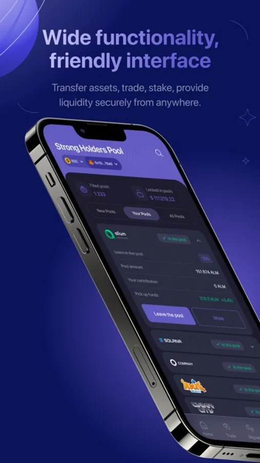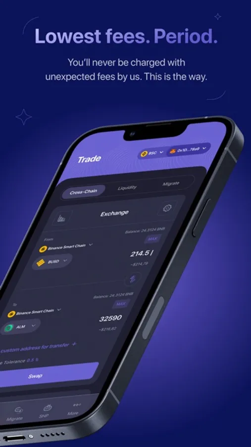 The mobile DEX provides numerous functions essential for effective asset management, including coin swaps, liquidity provision, inter-protocol swaps, and much more.