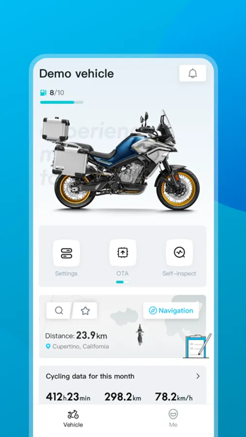 CFMOTO RIDE APP is a professional application tailor-made for motorcycle enthusiasts, and supports 2022 model year motorcycles (700CL-X HERITAGE not included) and will be available later on the other new motorcycles and off-road vehicles. Models supported by the APP may be different in your country. For further information, please consult your local dealer.