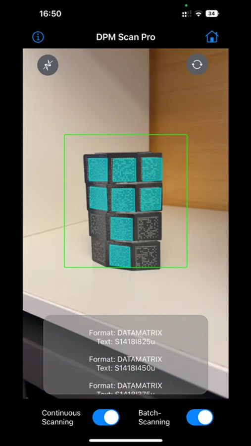 Scanning app for robust and fast scanning of DPM (Direct Part Markings) DataMatrix and QR codes. Scanned results can be delivered directly to the web browser via API settings or to a message queue via MQTT.