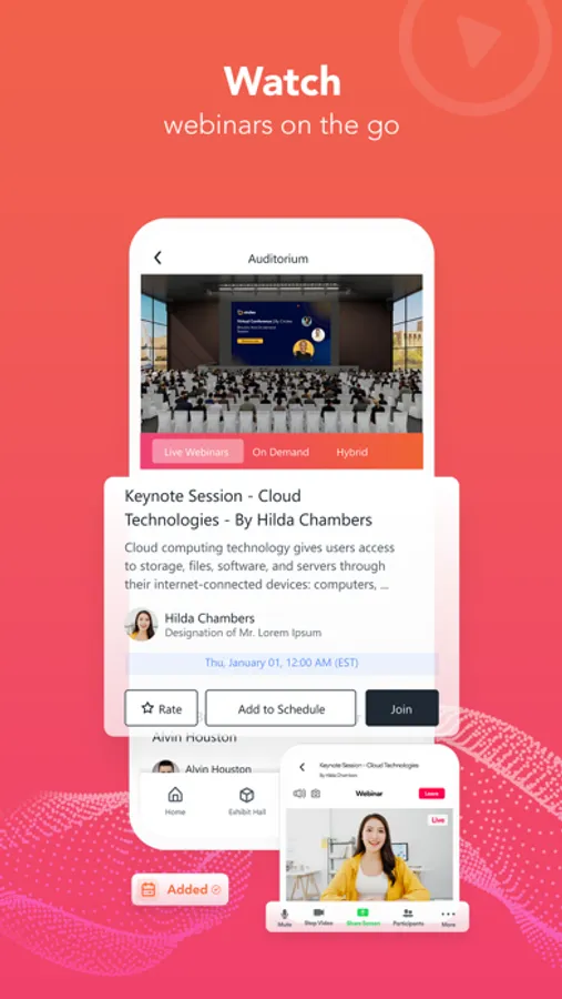Your attendees get access to live webinars, have access to on-demand replay, and also make a personalized schedule. Whether they join in person or virtually!