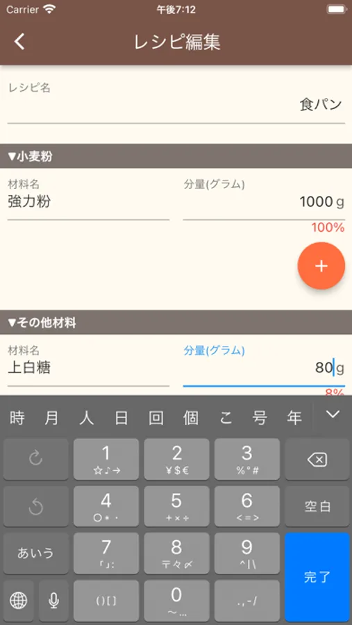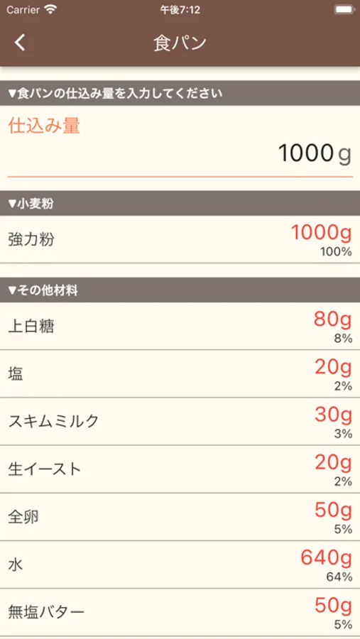 ・グラム表記のレシピを打ち込むだけで簡単にメーカーズ%に変換・保存が可能