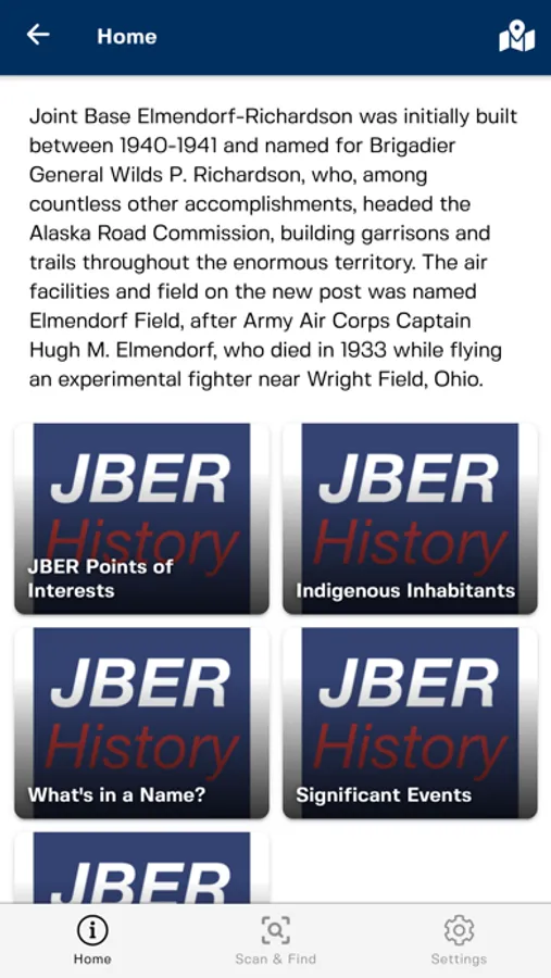 This application highlights the History of Joint Base Elmendorf/Richardson, Alaska. The application emphasis memorialized roads and buildings as well as static displays, and historical events.