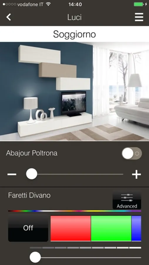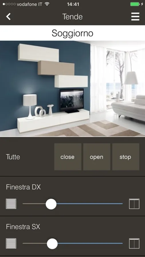 You can navigate across areas (for example: living room, bedroom, kitchen) or across services (for example: controls of all the lights that you have in your home). The App enables you to access immediately to 4 basic functions (lighting, thermal regulation, shutter/blind and scenes), whilst, with the upgrade, you can use 4 mayor functions: energy monitoring, ip video surveillance, audio/video systems control and anti-intrusion monitoring.