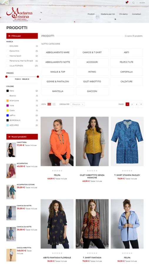 Madama Cristina nasce nel 1995 da un'intuizione di Aurora Seminato, che pensa a una linea di abbigliamento femminile che sia capace di valorizzare qualsiasi donna, indipendentemente dalla taglia. La collaborazione con le aziende più affermate del settore garantisce all'interno del punto vendita soluzioni che vanno dall'easy quotidiano al look da sera più formale, dalla particolarità di certi capi alla sobrietà di altri.