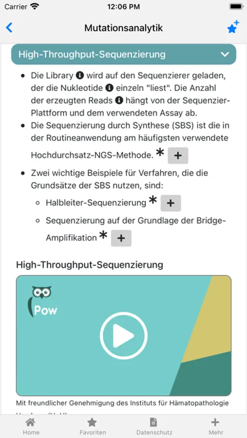Die App gibt Informationen zu zugelassenen Biomarker-gesteuerten Standard-Therapien sowie zu off-label/no-label Konzepten und Therapien in Entwicklung. Darüber hinaus enthält die App molekularbiologische Hintergrund-Informationen zu allen Alterationen und es werden die zur Bestimmung des Alterationsstatus angewandten Analysemethoden inkl. Auswertungskriterien beschrieben.