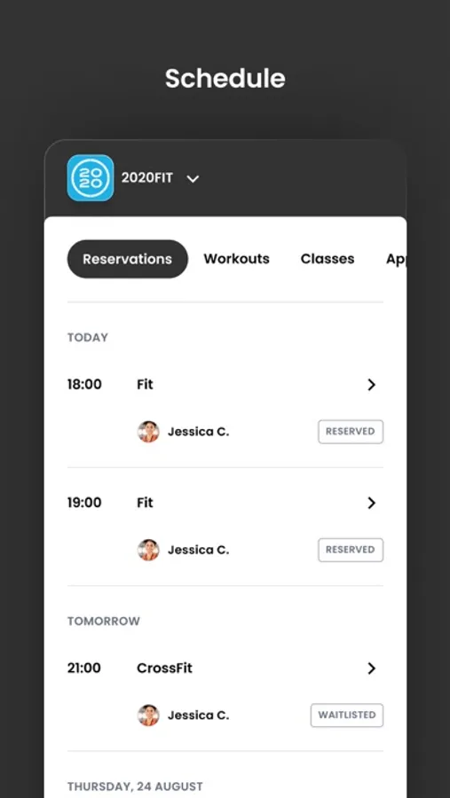 For members of 2020FIT to reserve their place in a class, sign up for gym events, and general account management like updating headshots and credit card on file.
