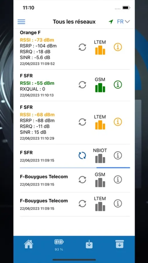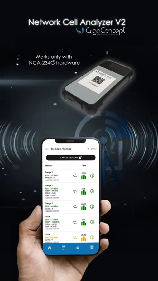 Application to use the new generation NCA-234G router, sold by GigaConcept, it allows you to scan the surrounding 2G/3G/4G/4G LTEM&NBIOT networks in order to locate the most efficient mobile network, all operators combined. Ensures the recovery of RSSI, RSRQ, RSRP, SINR, EC/IO, RXQUAL, BAND and CHANNEL data for comparison between the different operator antennas detected. Possibility to isolate an operator and a type of network (GSM, UMTS, LTE, LTEM and NBIOT) and to perform regular pings in order to obtain a complete analysis. The recovered data report can be exported in csv. NB: the application does not work without the dedicated router.