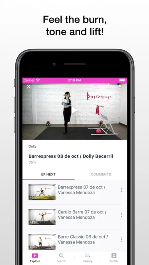 Barrexercise is the best barre app to exercise at home. Feel the burn, tone and lift!