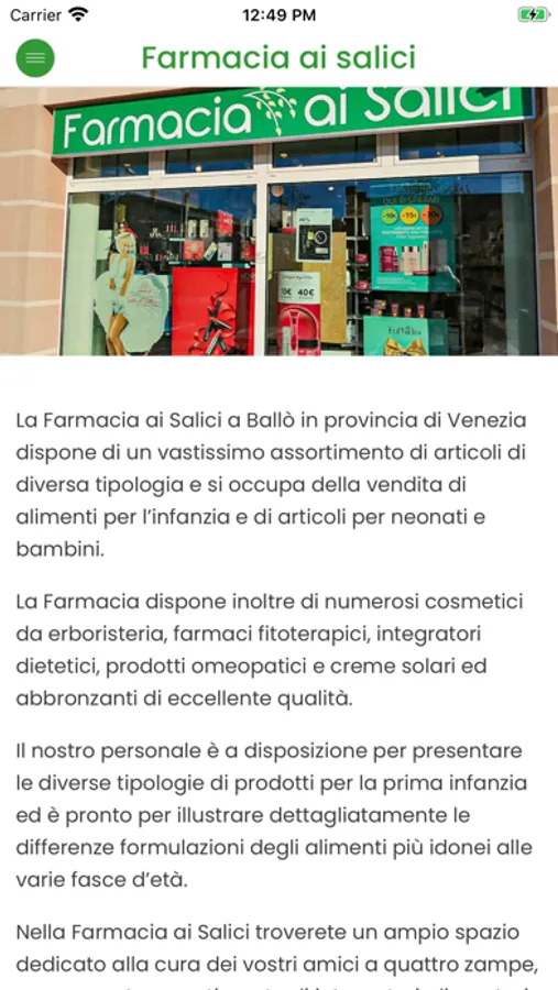 L'App della Farmacia ai Salici di Mirano (VE) ti permette di avere i tuoi farmacisti di fiducia sempre a portata di mano con consigli, informazioni, prenotazioni, ordini, richieste di prodotti e servizi in farmacia.
