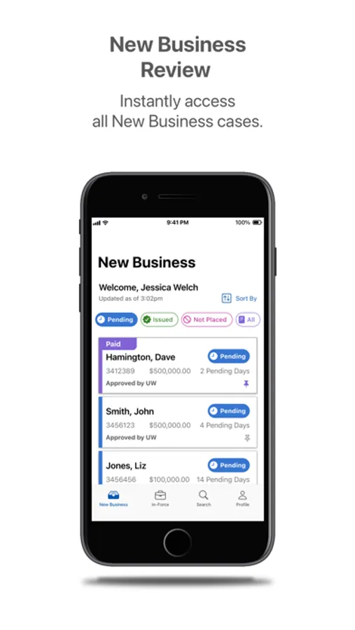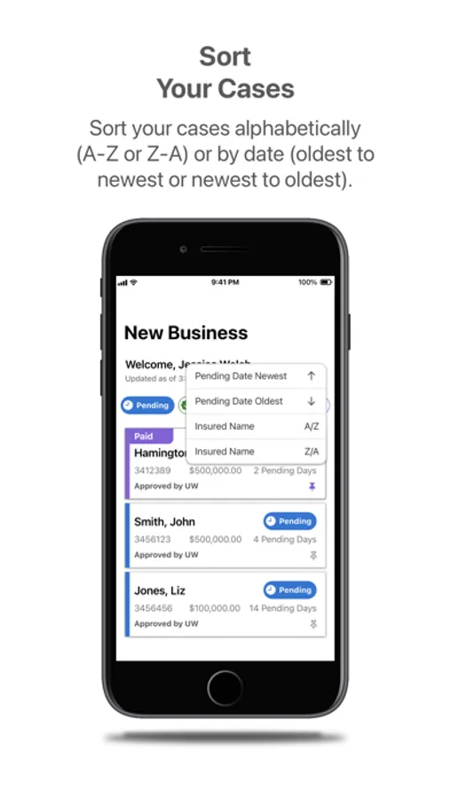 The Ameritas Agent App now offers new and improved access to all your cases throughout the application process. Instantly access new business cases; search, sort and filter all your cases quickly and easily; get alerts on any in-force activity changes; and manage all case requirements with just a few clicks.