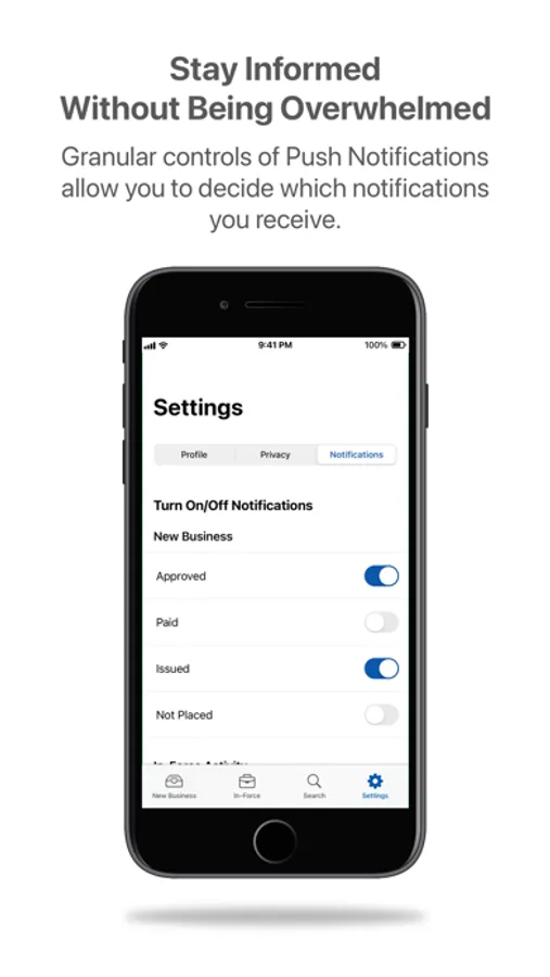 - Granular controls of Push Notifications allow you to decide which notifications you receive.