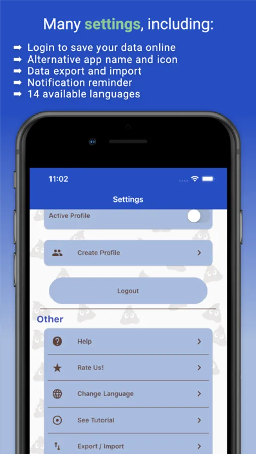 With Happy Poop, you can keep a diary of your poop, that can be used to chart graphs about how your bowel works, improve your self-awareness and share it with your doctor.
