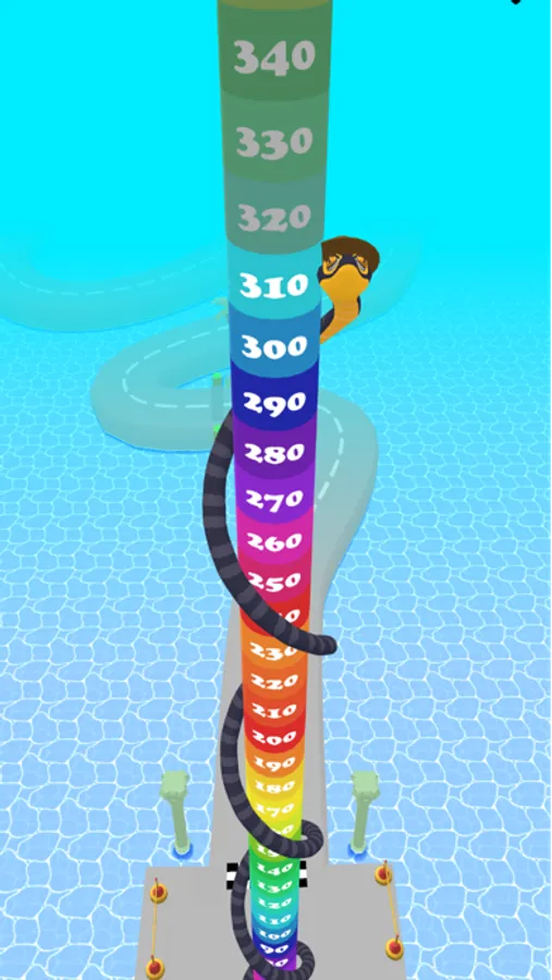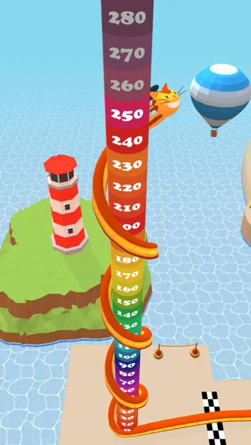 You are playing as a snake, and your only goal is to get to the finish column and climb to the top! It's really easy: simply hold your finger, and your snake automatically moves forward! On the track, there are all kinds of food. You have to collect this food to grow. The longer you are, the higher you will get on the finish column!