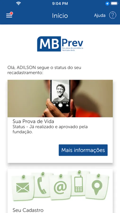 Aplicativo que proporciona aos assistidos e pensionistas da MBPrev – Mercedes-Benz Previdência Complementar a realização dos processos de Recadastramento e Prova de Vida, através de uma solução de inteligência artificial que utiliza reconhecimento facial e de documentos.