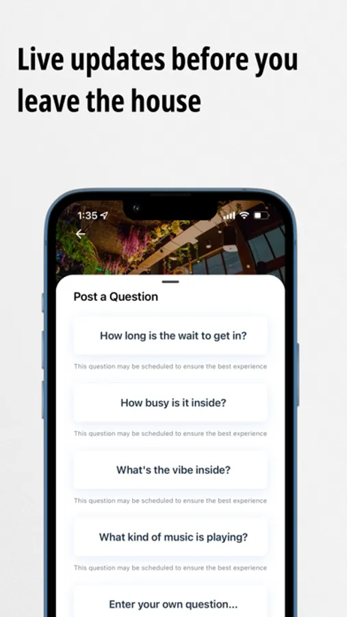 * Inside Ask - Ask someone to go inside an establishment to put your name down, find the availability of something you want to buy, or ask someone working there a question