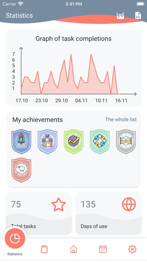 The application allows you to keep a list of tasks for the day, build schedules, set notifications and track the execution of tasks on the calendar.