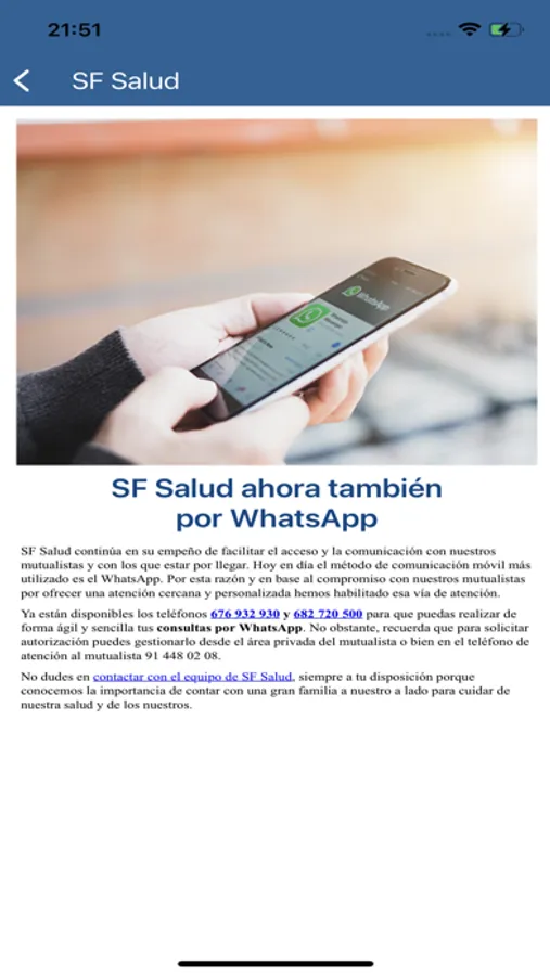 SF Salud está a su disposición y cualquier sugerencia de mejora de la App será estudiada. Puede escribirnos a atencion@sfsalud.com.