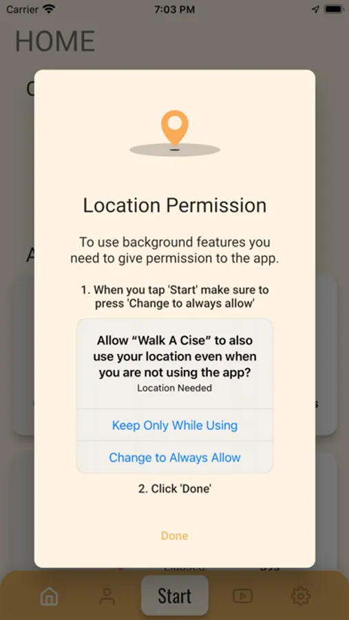 The Walk-A-Cise mobile phone application has been developed to help patients with peripheral arterial disease. Feedback from many patients shows that they find it difficult to know how far they are able to walk. Most patients do not have access to a supervised exercise class, and do not have the time to travel to the hospital for classes. The Walk-A-Cise App enables patients to exercise at their own convenience, in their own space at their own time. By seeing results every day patients know that they are walking further, and if linked to their hospital, knowing that healthcare professionals can see the results gives security that they are being monitored. The App is simple to use. A button is pressed to start a walk, and the same button to stop, with distance measured by GPS tracking. This is then automatically saved. Patients can also see previous walks so they can see how they are improving.