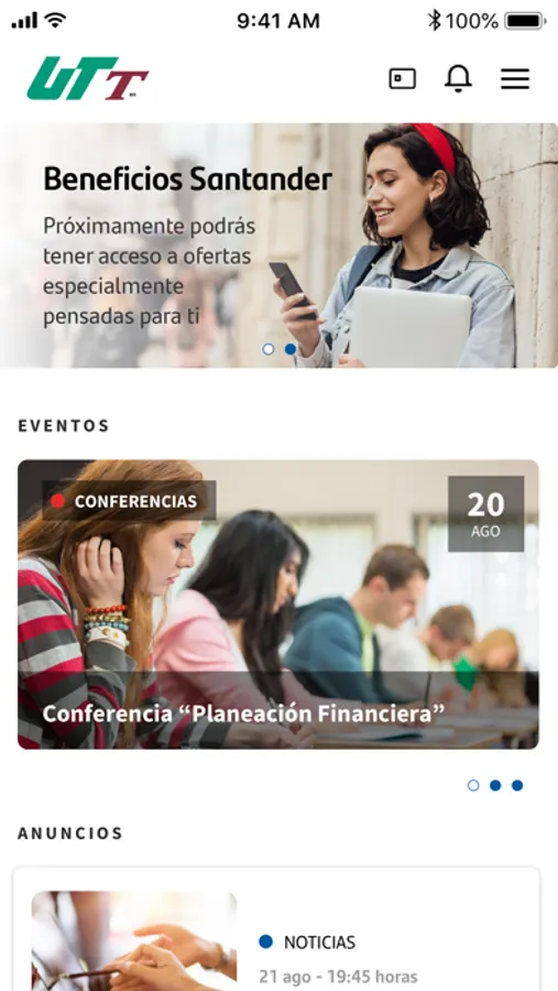 * Descubrir información relevante de tu vida escolar, como eventos, horarios de clase, videoteca y más.
