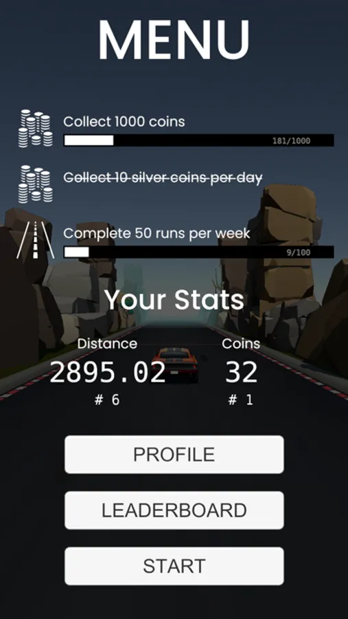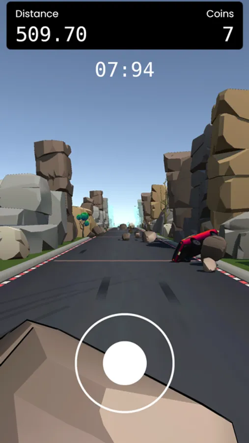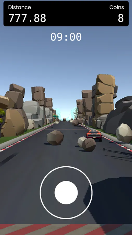 4Players Arcade Racer is a simple one-handed mobile game that puts you in the drivers seat following a road with falling rocks. Reach checkpoints with short time intervals and compare achieved distance or collected coins with your friends and colleagues.