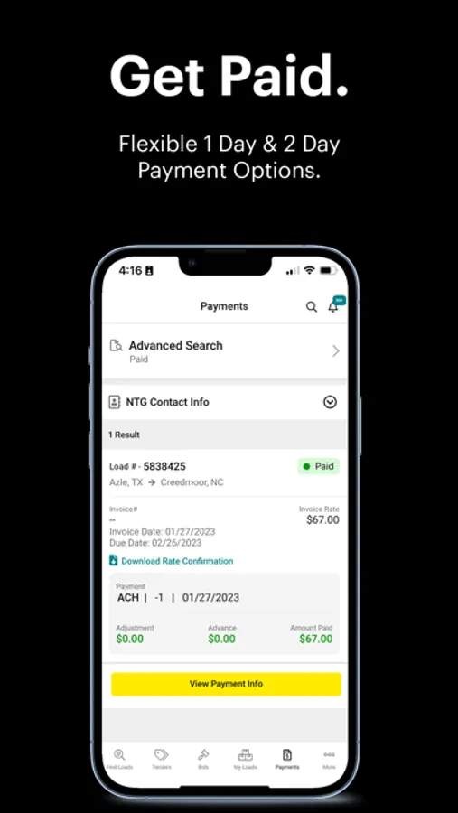 Looking to get paid on that load you recently delivered? Beon Carrier makes it easy to search and view the payment status of all your recent loads. You also have 24/7 support for any payment inquires. If you need to get paid faster, our 1 Day and 2 Day Payment options are deposited directly into your checking account.