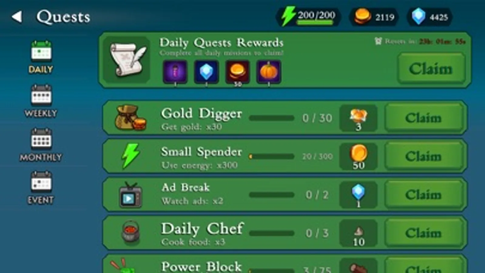 Follow an engaging story, solve puzzles, cook delicious food, remove blocks, and finish monthly events for great rewards!
