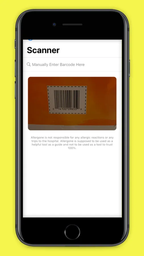 Your tool for allergy checking. Scan any food barcode to check its corresponding food's ingredients to determine whether or not you are allergic to it.