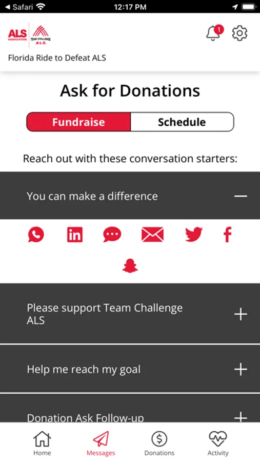 Do your fundraising on the go with your Team Challenge ALS Mobile & Tablet application. Update your personal page, send emails, check your progress, and connect to Apple HealthKit to track your physical activity – all from the palm of your hand. Team Challenge ALS application is a great tool to track your fundraising progress, and to keep current on all Team Challenge ALS news!